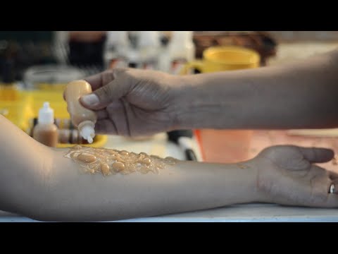 Materiales: jarabe de maíz, colorantes de repostería (se encuentran en cualquier supermercado) y látex líquido (adquiérelo en tiendas de disfraces).